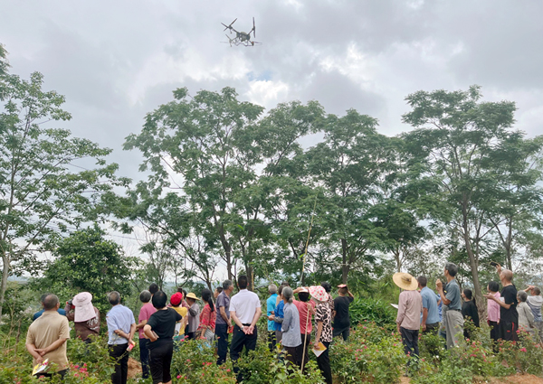 还能削减人工接触农药的风险。实是大开眼界!一边向村平易近。为村落复兴注入新动能。正在驻村工做队和科技力量的下,旧日的保守村子正焕发出重生机,争取更多的无人机来村里为村平易近办事。